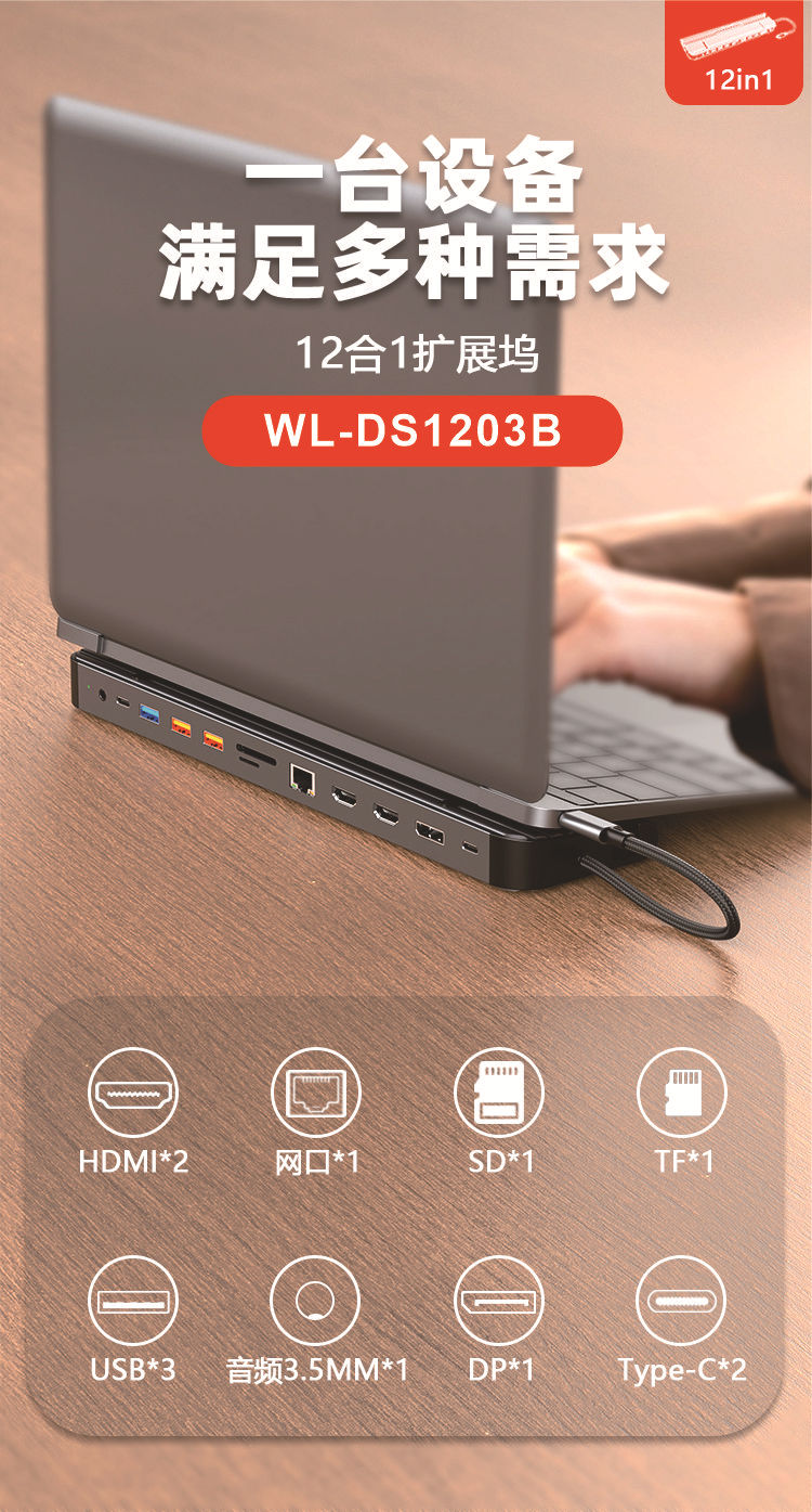 12合1 笔记本多功能Type-c拓展坞 USB集线器 hub