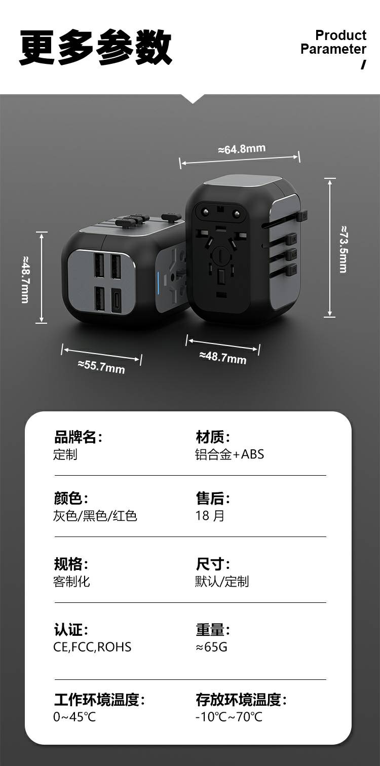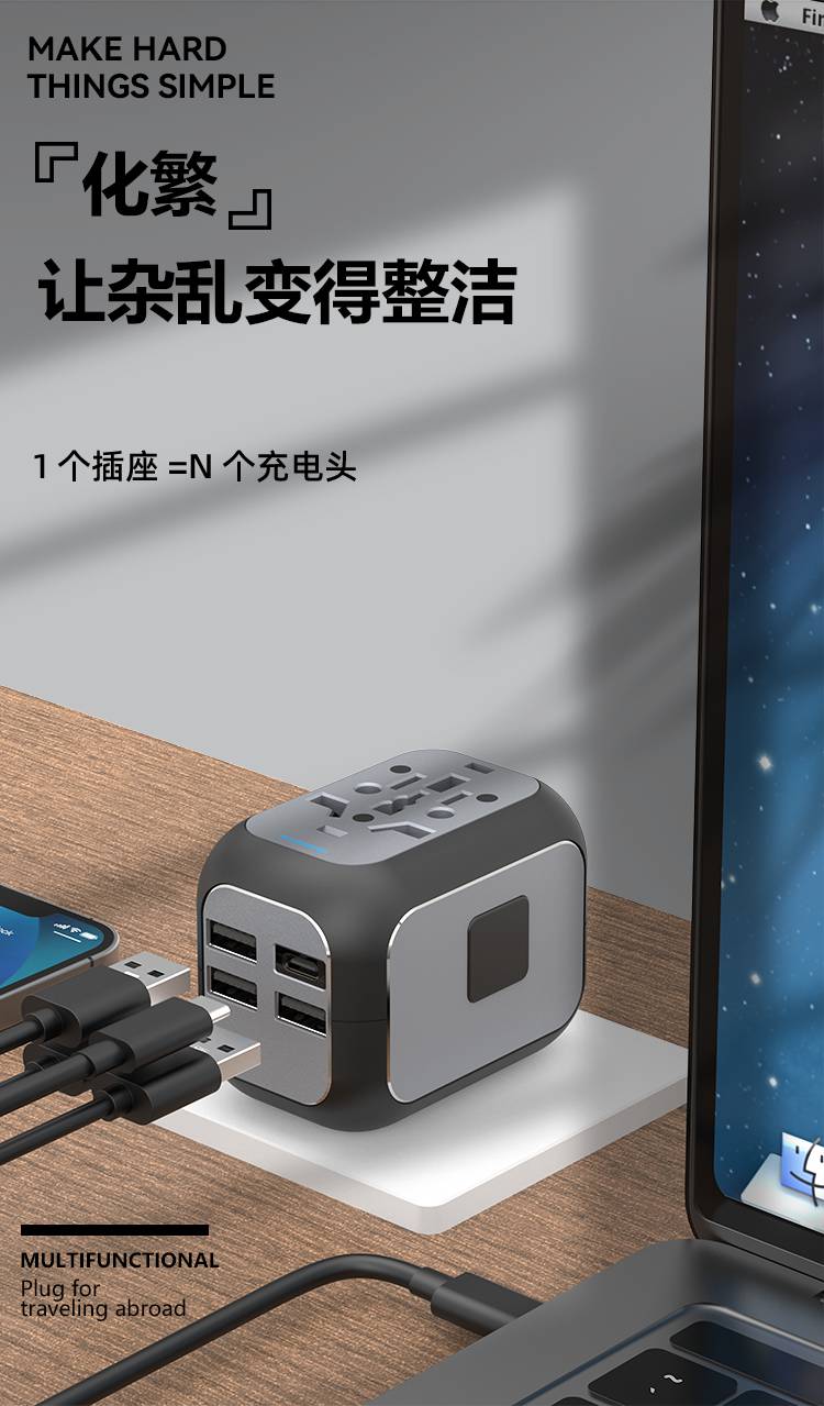 1个C口3个USB-A口,多国规格转换一体设计便携旅充,全新升级插座孔,小巧便携,仅掌心大小;满足国际旅行个各种所需。