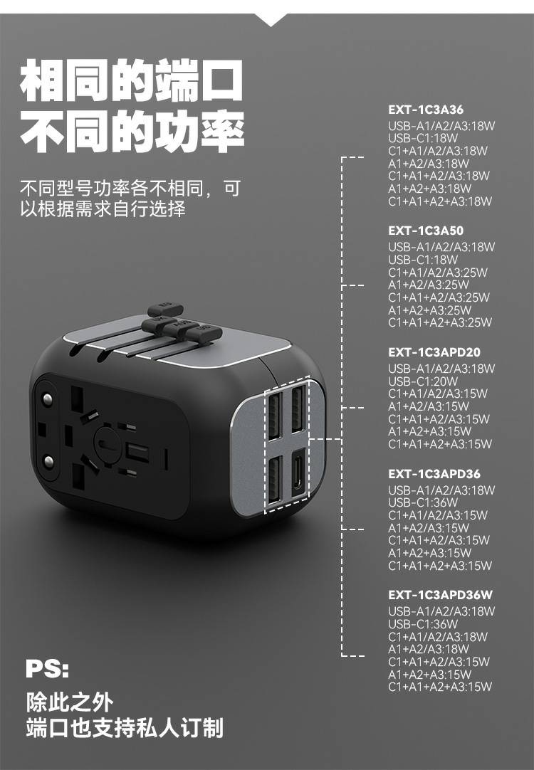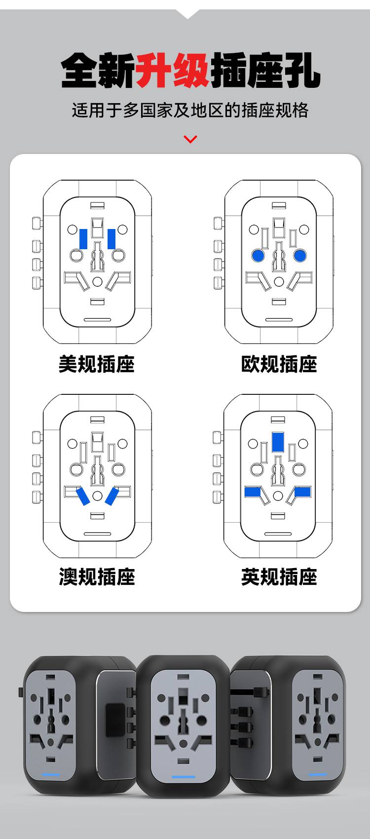 USB转换插座全球通旅行转换插头 PD20W+QC18W