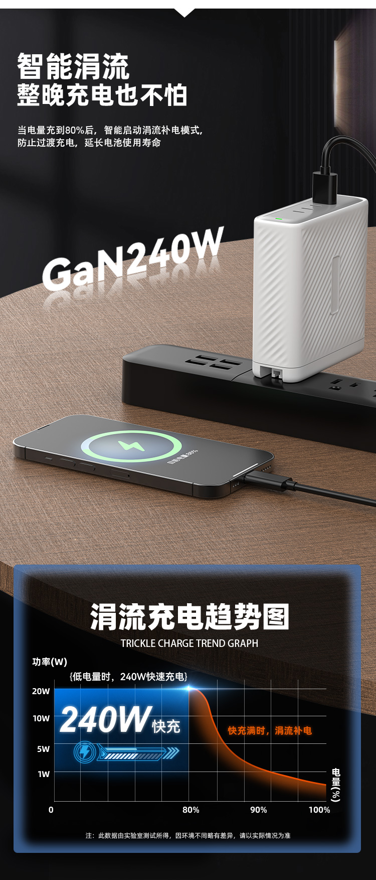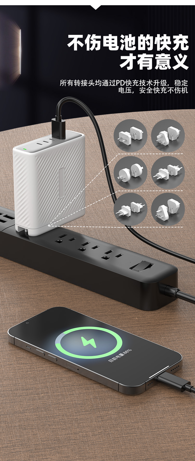 智能涓流,防止过渡充电,延长电池使用寿命;智能内芯,多重安全防护;所有转接头均通过PD快充技术升级,稳定电压,安全快充不伤机。