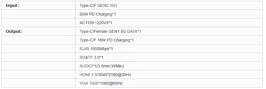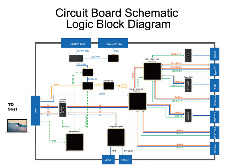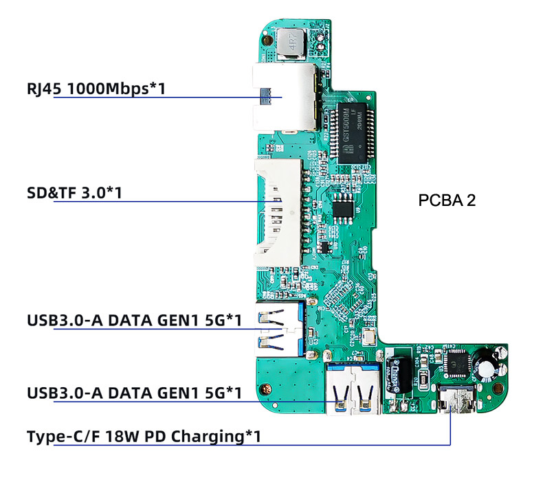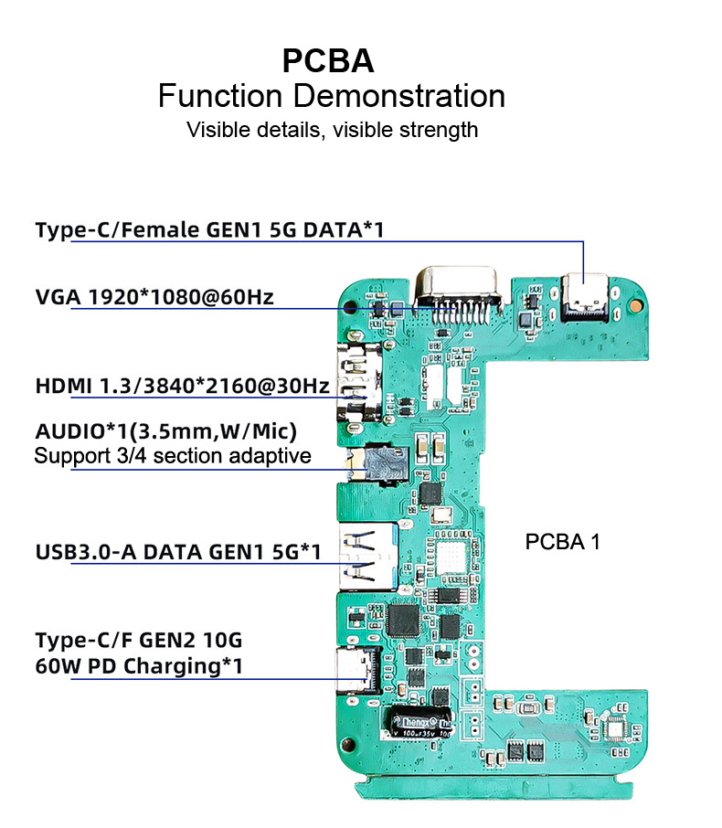 11 in 1 USB Type-C to HDMI+3*USB3.0+VGA+ RJ45+ Type-C PD*2+SD+TF+Audio Docking Station PCBA