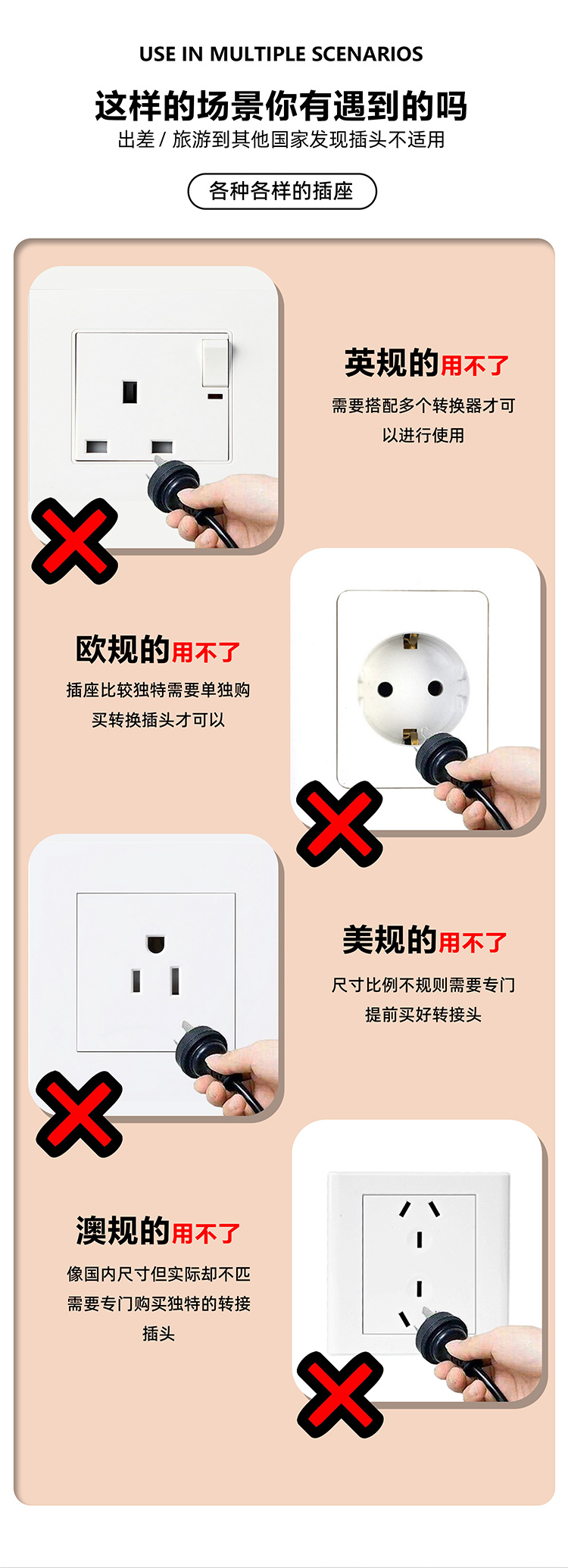2C3A一体设计全新升级多国规格便携国际旅行充电转换插头