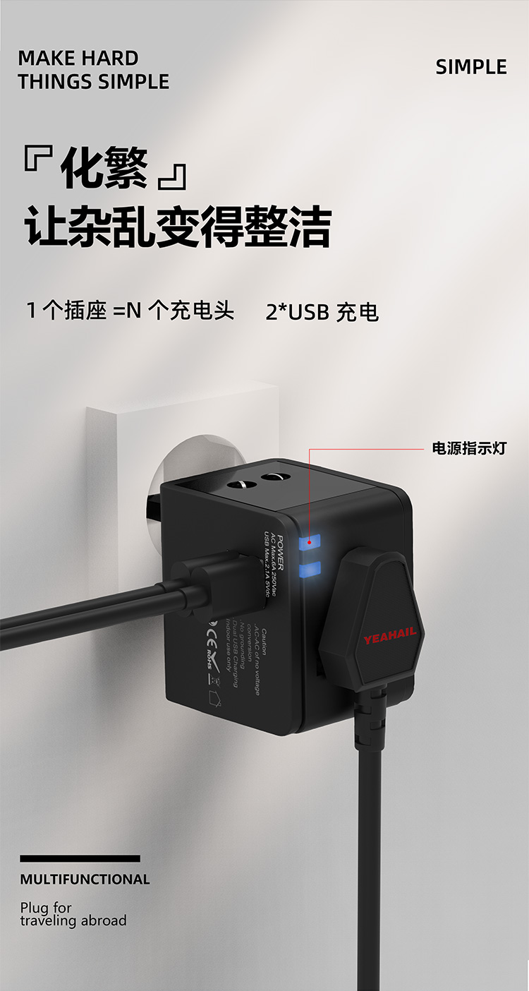 3C2A全新升级多国规格一体设计便携国际旅行充电转换插头