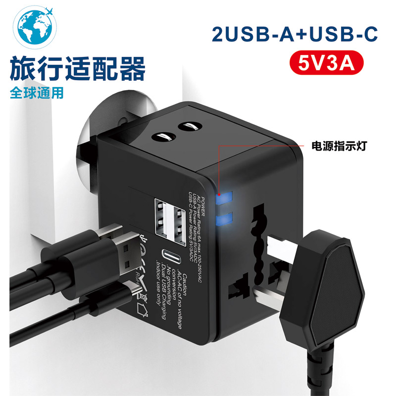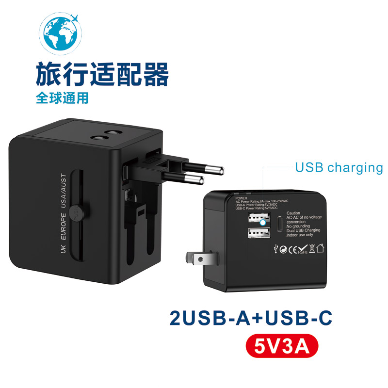 2C3A一体设计全新升级多国规格便携国际旅行充电转换插头