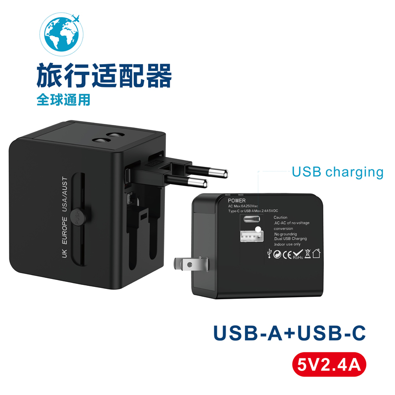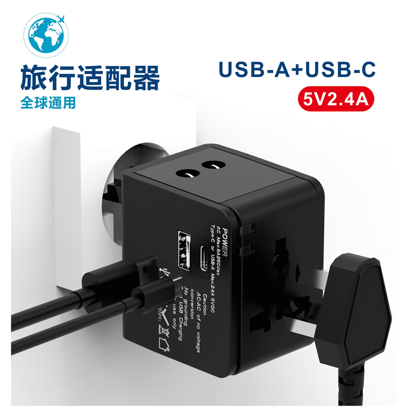 PD20W全球通旅行转换插头 USB转换器多国插